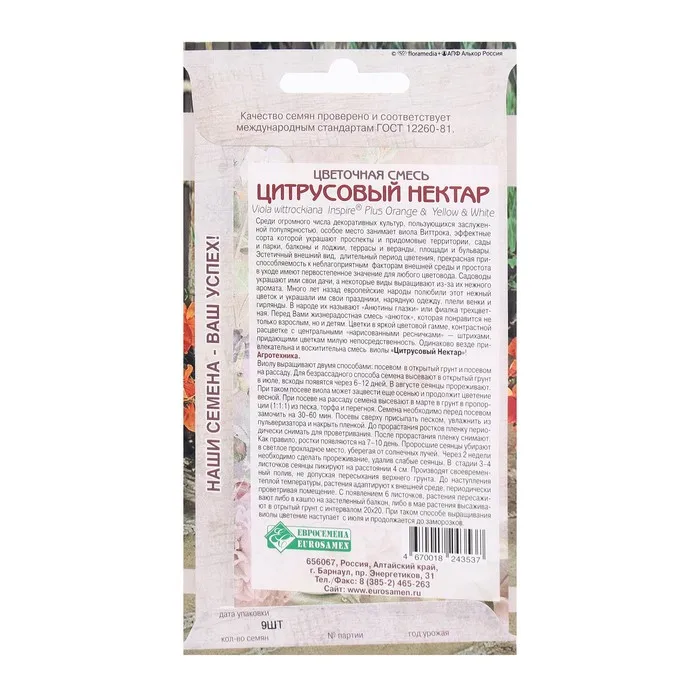 Одинаково везде привлекательна и восхитительна смесь виолы »Цитрусовый Нектар».