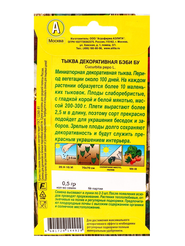 Семена цветов Тыква декоративная Бэби бу , Ц/П,0,5 г — Характеристики