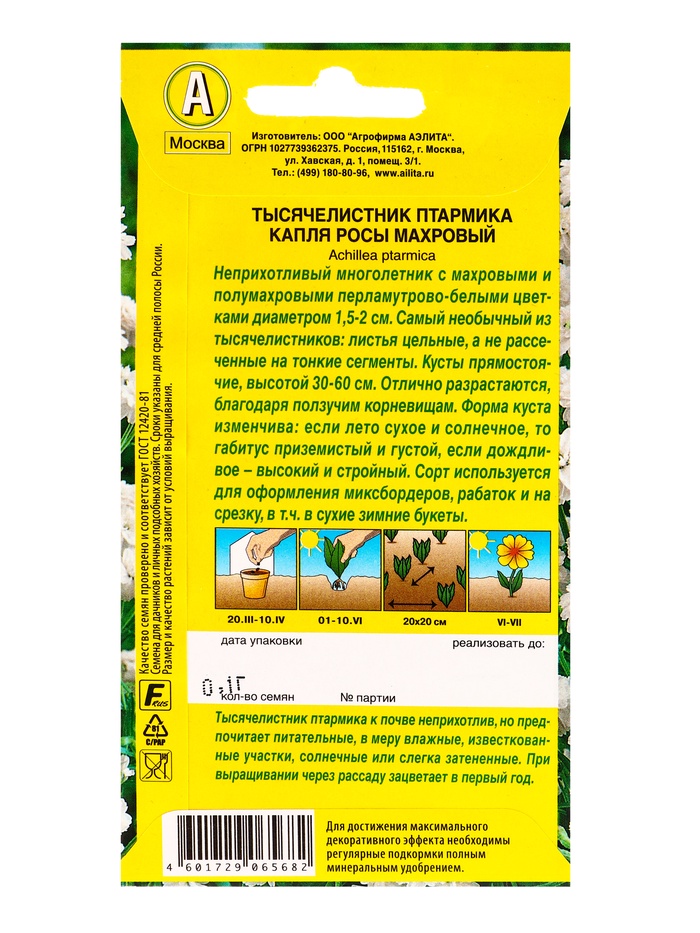 Семена цветов Тысячелистник махровый Капля росы Мн, Ц/П,0,1 г — Характеристики