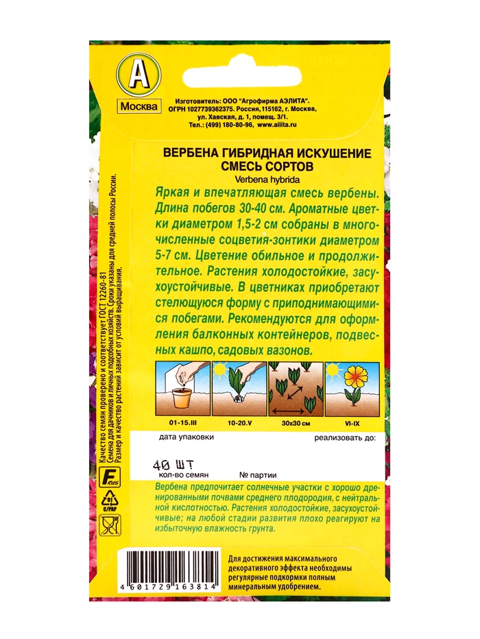 Семена Цветов Вербена "Искушение", смесь сортов, ц/п, 0,1 г — Характеристики