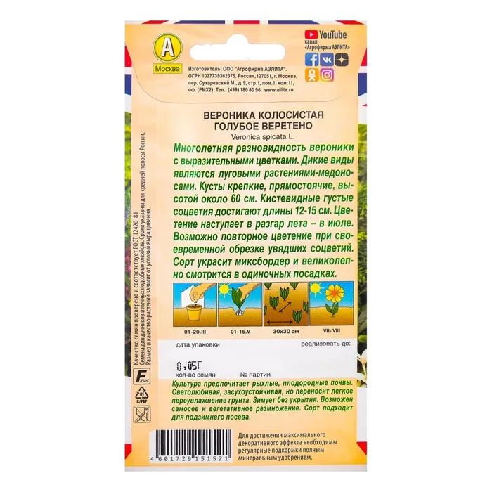 Многолетняя разновидность вероники с выразительными цветками. Дикие виды являются луговыми растениями-медоносами. Кусты крепкие, прямостоячие, высотой около 60 см. Кистевидные густые соцветия достигают длины 12-15 см. Цветение наступает в разгар лета – в июле. Возможно повторное цветение при своевременной обрезке увядших соцветий. Сорт украсит миксбордер и великолепно смотрится в одиночных посадках.