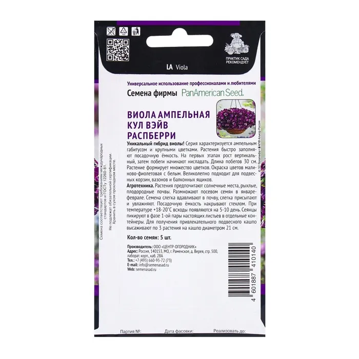 Семена цветов Виола ампельная Кул Вэйв Распберри, 5шт — Характеристики