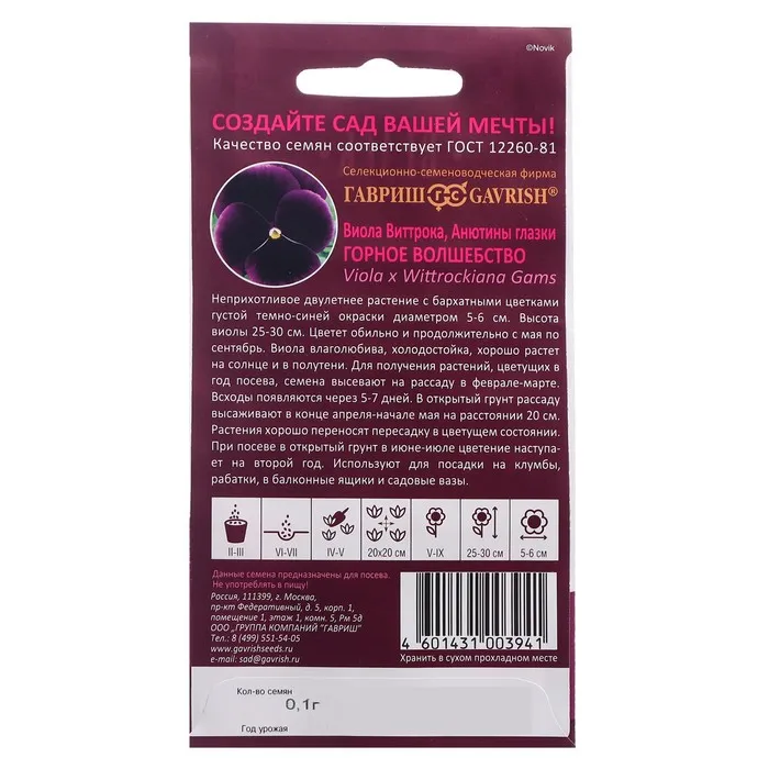 Традиционное и любимое растение семейства Фиалковые для ранневесеннего оформления, обычно выращивают как двулетник. Но при посеве рано весной цветение наступает в тот же год и длится до глубокой осени. Холодостойкое, влаголюбивое растение высотой 20-35 см. Цветки темно-синие до 8 см в диаметре.