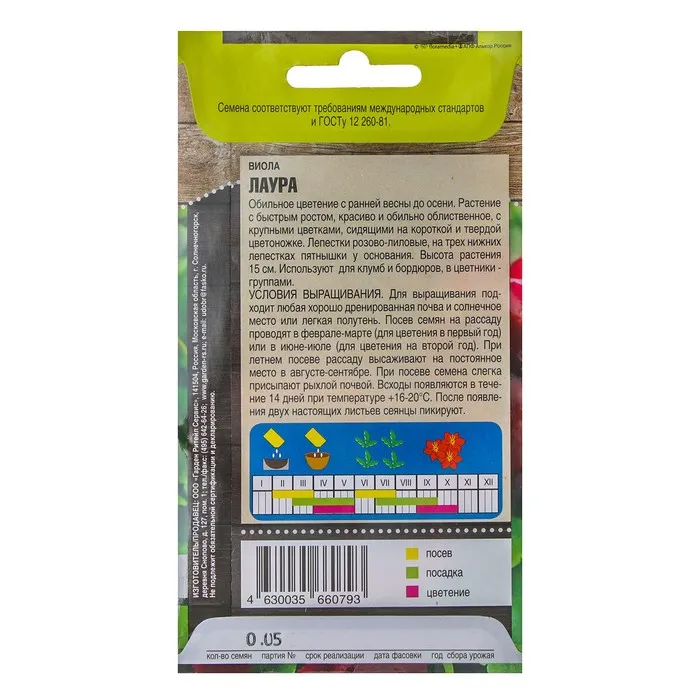 Обильное цветение с ранней весны до осени. Растение с быстрым ростом, красиво и обильно облиственное, с крупными цветками, сидящими на короткой и твердой цветоножке. Лепестки розово-лиловые, на 3-х нижних - пятна у основания лепестков. Высота растения 15 см. Используют для клумб и бордюров.