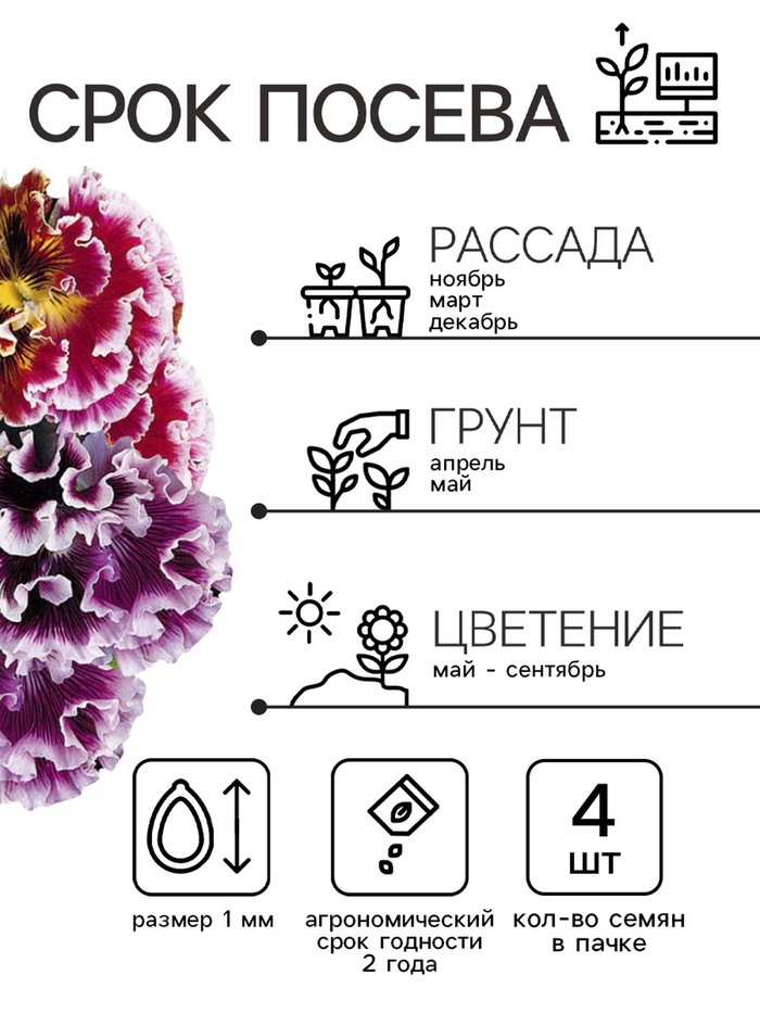 Семена цветов Виола Виттрока «Махровое кружево», триколор, F1, 4 шт., двулетник, «Гавриш» — Характеристики