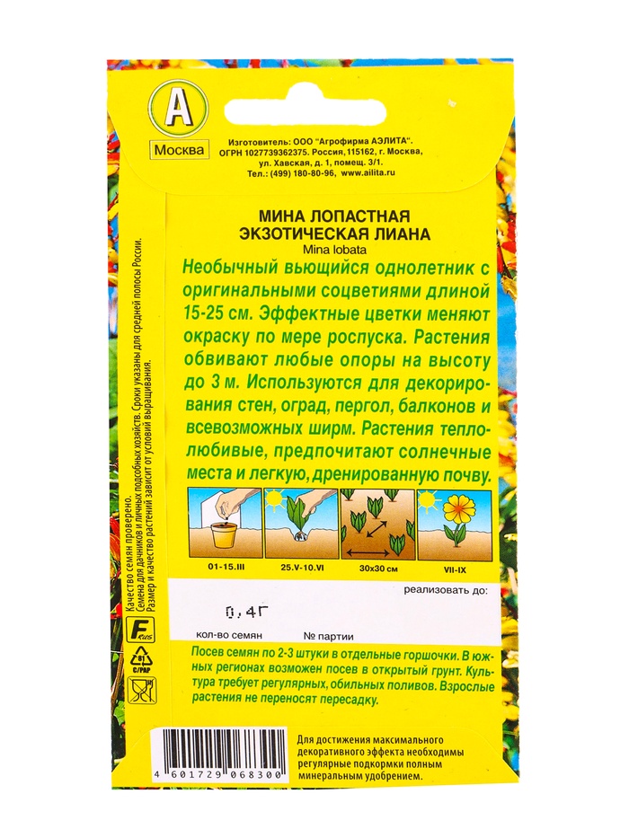 Семена цветов Вьюнок Экзотическая лиана , Ц/П,0,4 г — Характеристики