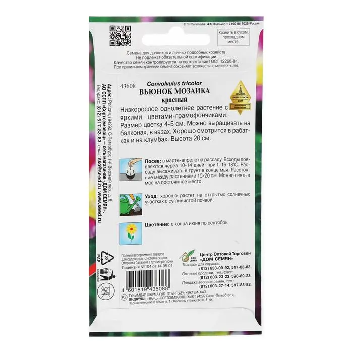 Семена цветов Вьюнок "Мозаика", красный, 44 шт — Характеристики