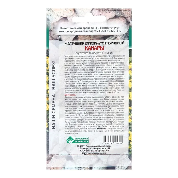 Семена цветов Желтушник гибридный "Канары", 5 шт — Характеристики
