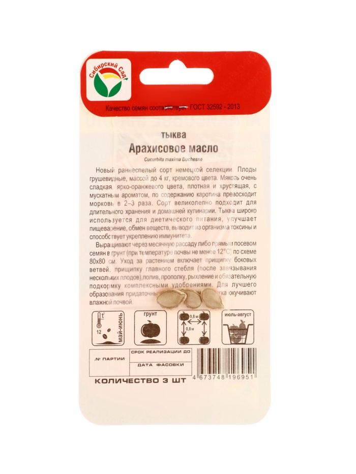 Семена Тыква Арахисовое масло 3шт — Характеристики
