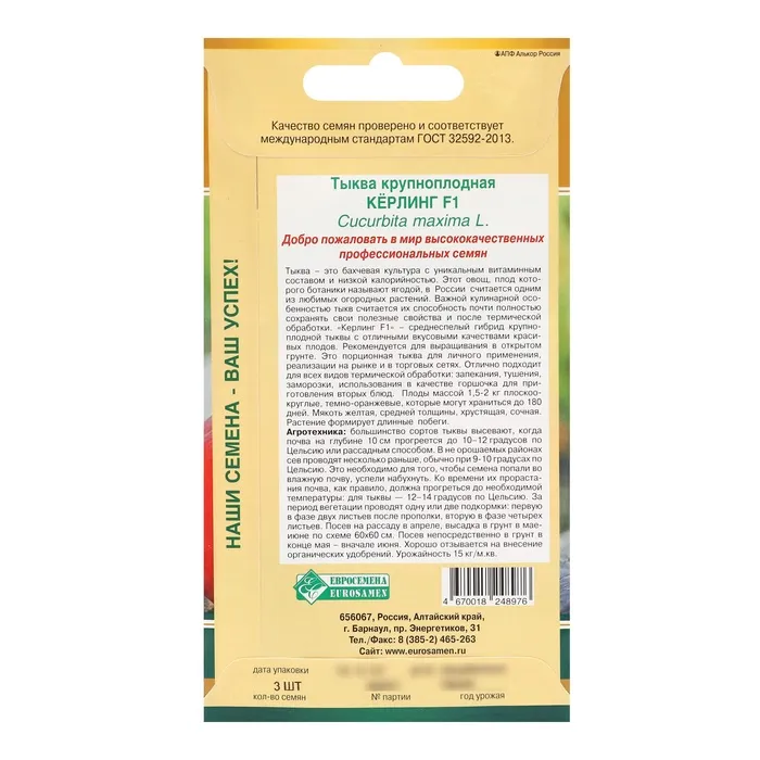 Семена Тыква "Кёрлинг", F1, 3 шт — Характеристики