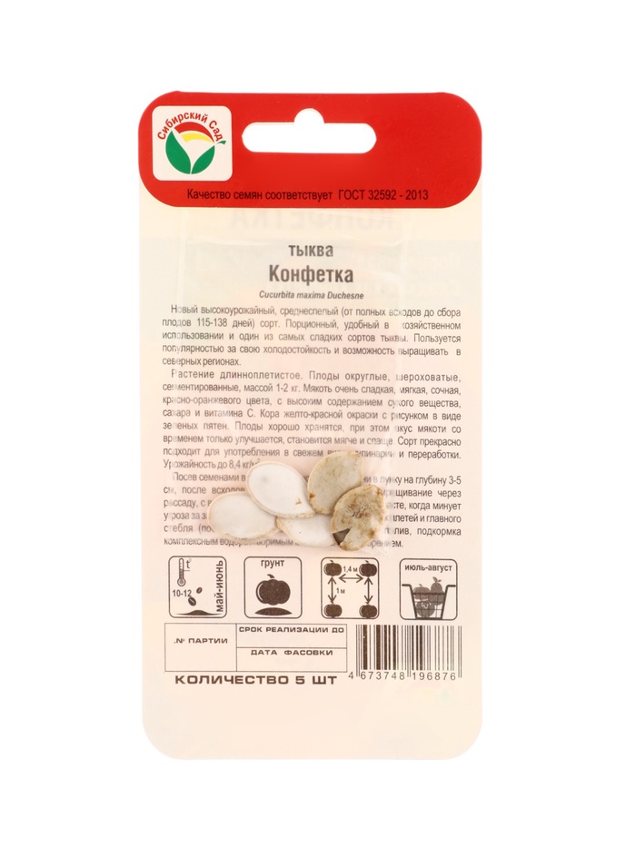 Семена Тыква Конфетка 5шт — Характеристики