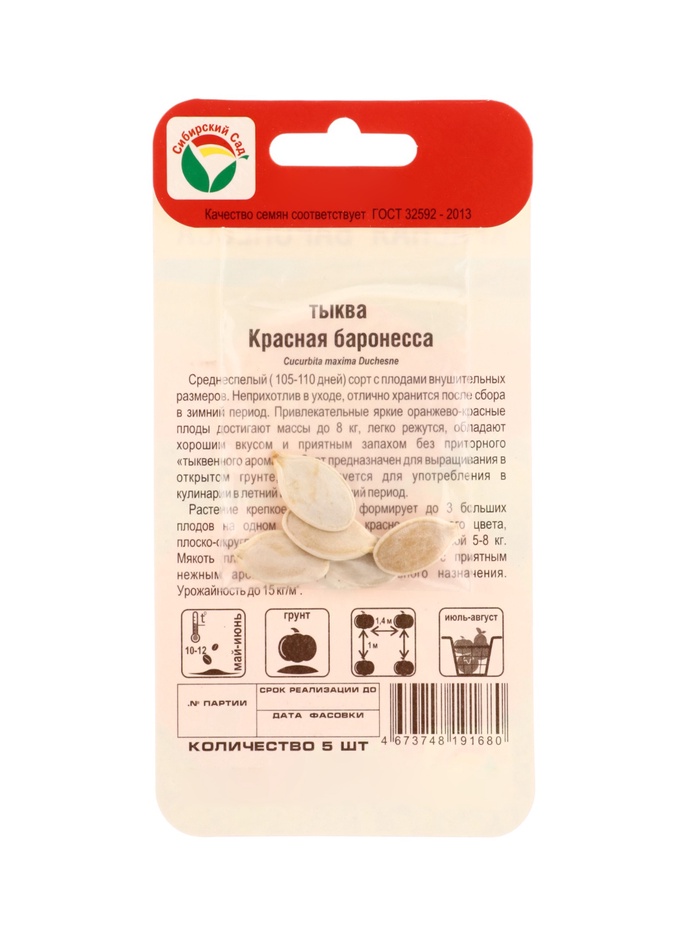 Семена Тыква Красная баронесса 5шт — Характеристики