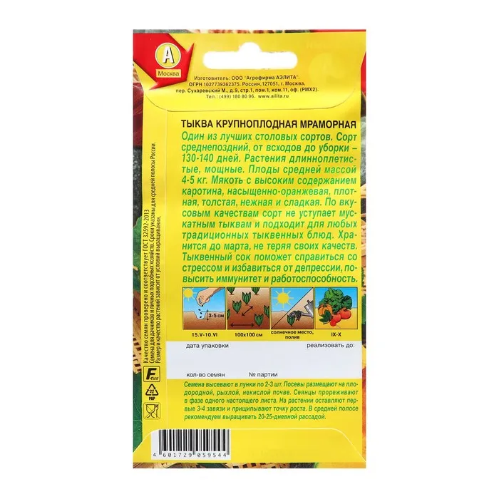 Семена Тыква крупноплодная Мраморная Ц/П 2г — Характеристики