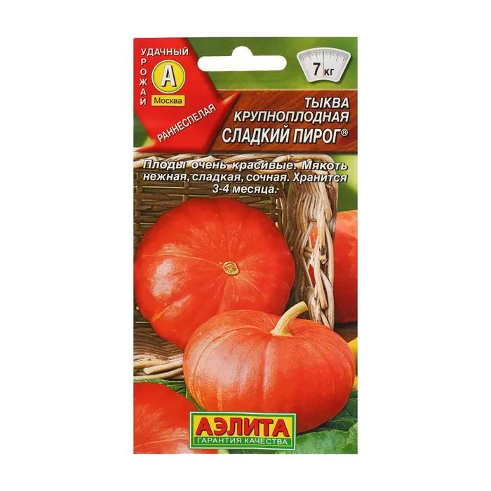 «Сладкий пирог» — раннеспелый сорт тыквы столового назначения. Растение формирует оранжевые плоды плоскоокруглой формы с жёлтой сладкой хрустящей мякотью.