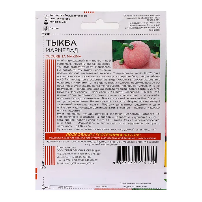 Семена Тыква "Мармелад", 6 шт — Характеристики