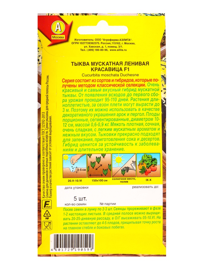 Семена Тыква мускатная «Ленивая красавица», F1, «Профи-Аэлита», 5 шт. — Характеристики