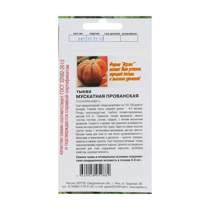 Семена Тыква "Мускатная Прованская", 5 шт — Характеристики