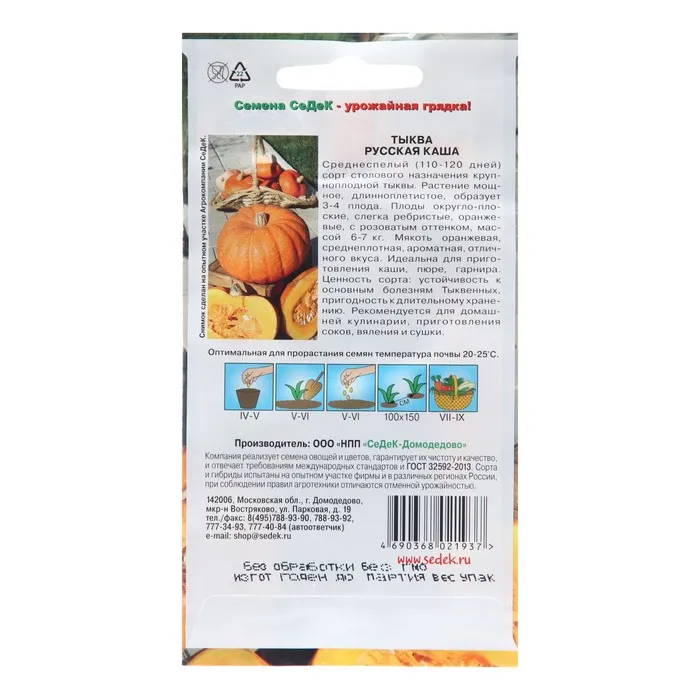 Семена Тыква "Русская каша", 1 г — Характеристики