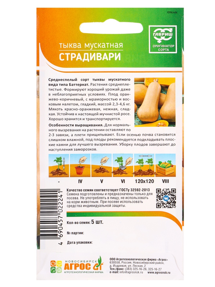 Семена Тыква "Страдивари" 5 шт — Характеристики