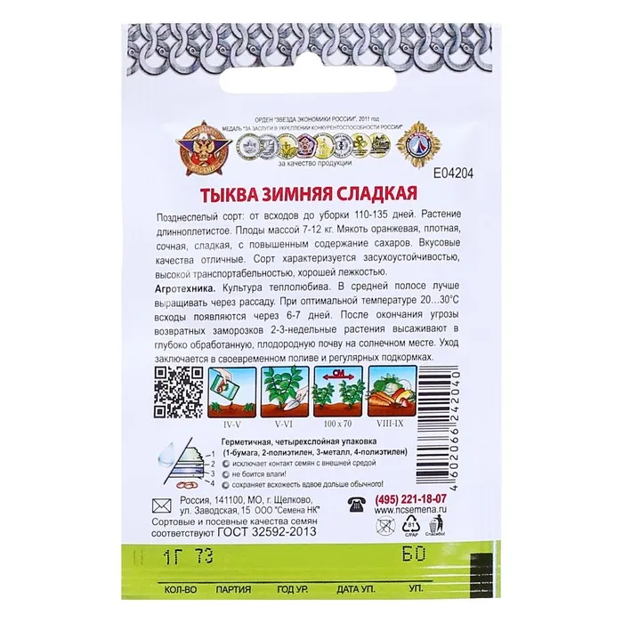 Семена высаживают в грунт, когда почва прогреется до 10–12 °C. Высевают по 2–3 штуки в лунку на глубину 3–5 см. После появления всходов слабые растения удаляют. Также выращивают через рассаду, с высадкой в открытый грунт в месячном возрасте, когда минует угроза заморозков. Схема посадки: 80 × 80 см. Предпочитает супесчаные и легкосуглинистые почвы (чаще всего тыкву высаживают на компостные кучи).