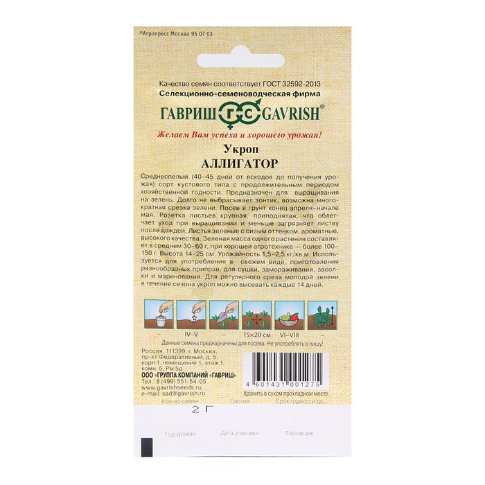 Семена Укроп «Аллигатор», 2 г, «Гавриш» — Характеристики