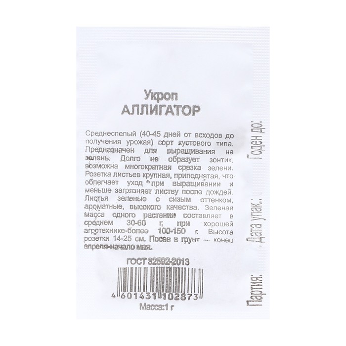 Среднеспелый (40-45 дней от всходов до получения урожая) сорт кустового типа. Предназначен для выращивания на зелень. Долго не образует зонтик, возможна многократная срезка зелени. Розетка листьев крупная, приподнятая, что облегчает уход при выращивании и меньше загрязняет листву после дождей. Листья зеленые с сизым оттенком, ароматные, высокого качества. Зеленая масса одного растения составляет в среднем 30-60 г, при хорошей агротехнике-более 100-150 г. Высота розетки 14-25 см. Посев в грунт — конец апреля-начало мая. Урожайность 1,5-2,5 кг/м2.