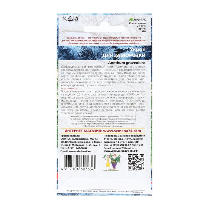 Семена Укроп "Для Заморозки", 2 г — Характеристики