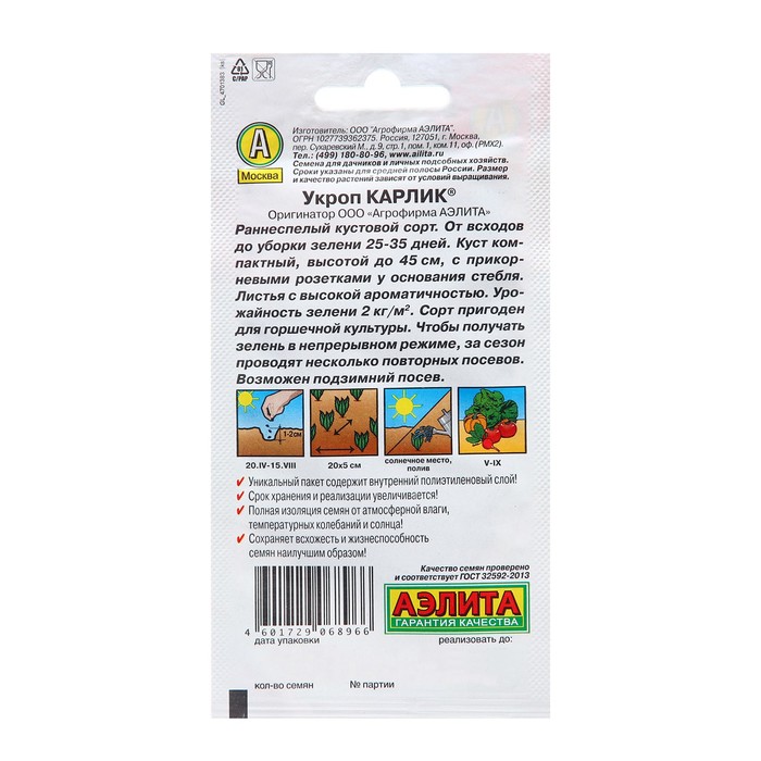 Семена Укроп Карлик ® Ц/П 3г — Характеристики