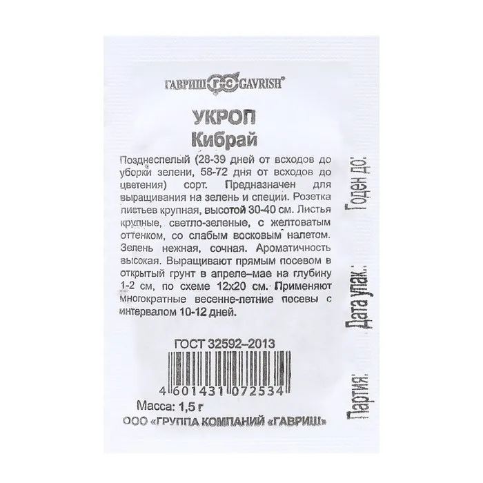 Позднеспелый (28-39 дней от всходов до уборки зелени, 58-72 дня от всходов до цветения) сорт. Предназначен для выращивания на зелень и специи, долго не цветет. Листья крупные, светло-зеленые, со слабым восковым налетом. Зелень нежная, сочная. Ароматичность высокая. Розетка листьев крупная, полуприподнятая, высотой 30-40 см. Сорт характеризуется высокой урожайностью, сильной облиственностью и рассеченностью листовой пластины. Урожайность на зелень 1,3-3,0 кг/м2, на специи- 2,7-6,3 кг/м2. Посев в открытый грунт проводится в конце апреля-начале мая.