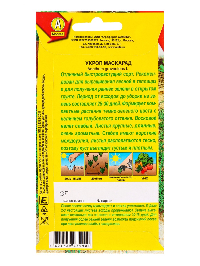 Семена Укроп Маскарад Ор. А, Ц/П,3 г — Характеристики