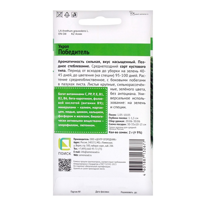 Вырастить свой собственный укроп — это просто, приятно и невероятно полезно! Представьте, как ваш стол украшают свежие, ароматные зеленые веточки, которые вы сами вырастили. Семена укропа «Победитель» — это надежное решение для тех, кто ценит качество, удобство и экономию. Они не только просты в использовании, но и обеспечивают гарантированный результат. Не упустите возможность порадовать себя и своих близких натуральной зеленью круглый год. Закажите семена прямо сейчас и сделайте шаг к здоровому питанию и уютному огородничеству!
