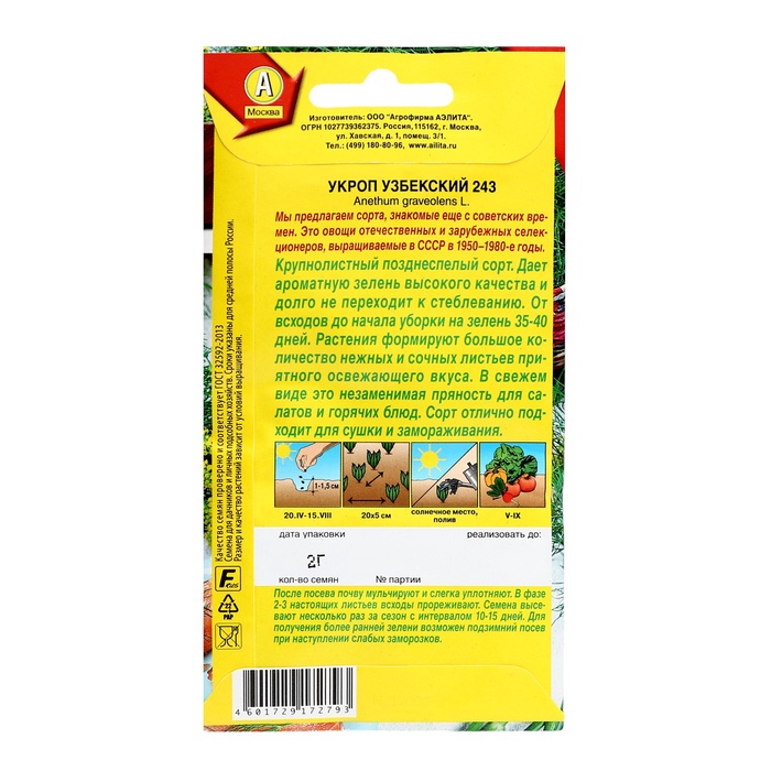 Семена укропа «Узбекский 243» — прекрасный выбор для любителей ароматной зелени. Этот сорт идеально подходит для выращивания на открытом грунте и даст средние урожаи с насыщенным вкусом и ароматом. Посев можно осуществлять в течение всего года для рассады и в открытом грунте в мае-июне.