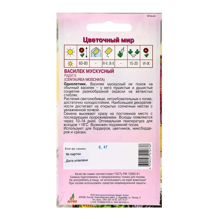 Семена Василек Мускусный Радуга 0.4г* — Характеристики