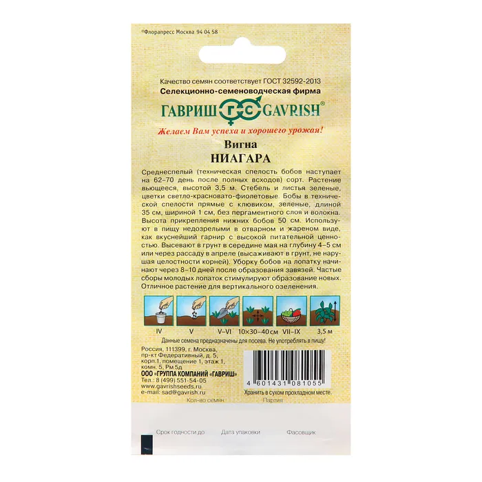 Среднеспелый (техническая спелость бобов наступает на 62-70 день после полных всходов) сорт.