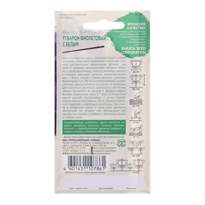 Семена Виола "Барон Фиолетовый с белым", ц/п, F1, 5 шт. 1018096 — Характеристики