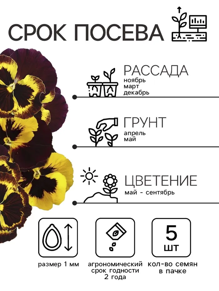 Семена Виола "Барон Махагон", ц/п, F1, 5 шт. — Характеристики