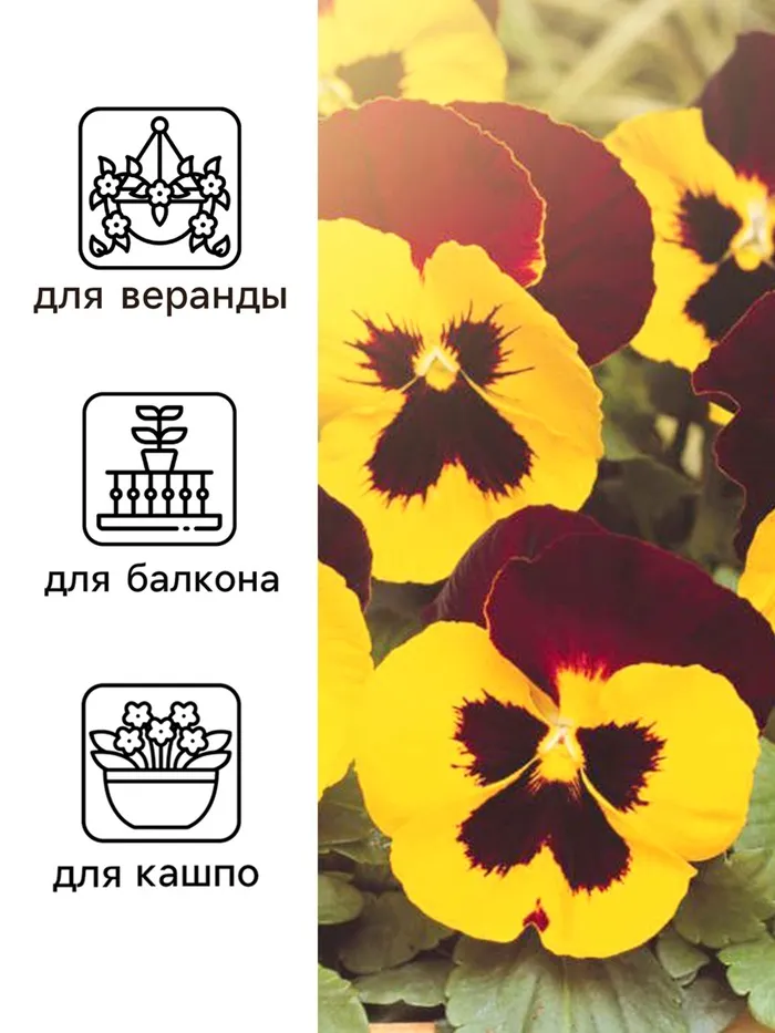 Восхитительная серия крупноцветковой гибридной виолы, благодаря необычным оттенкам станет центральным украшением балкона, или любого садового пространства. Цветет обильно и продолжительно с мая по сентябрь. Цветки коричнево-красные с желтым глазком и яркими штрихами в центре, диаметром 6 см. Растение влаголюбивое, холодостойкое, хорошо растет на солнце и в полутени. Для получения растений, цветущих в год посева, семена высевают на рассаду в феврале-марте. Всходы появляются через 5-7 дней. В открытый грунт рассаду высаживают в конце апреля-начале мая на расстоянии 20 см. Хорошо переносят пересадку в цветущем состоянии. При посеве в открытый грунт в июне-июле, цветение наступает во второй год. Используют для посадки на клумбы, в рабатки, балконные ящики и садовые вазы.
