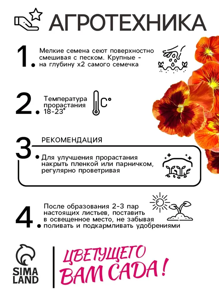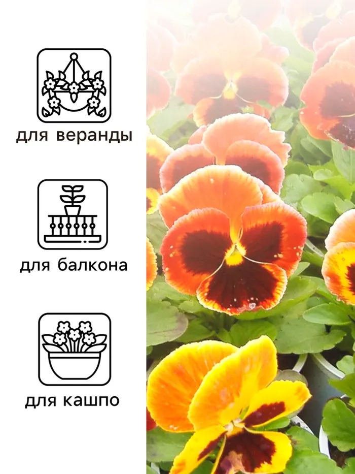 Кустики крепкие, высотой 25-30 см. Они отлично ветвятся и сохраняют аккуратный вид в течение всего сезона. Растения зацветают уже на стадии рассады! Многочисленные цветки ? 5-6 см с бархатистой фактурой и яркой, насыщенной расцветкой радуют глаз длительное время. Они устойчивы к дождю и ветру, а изящная гофрировка краев лепестков усиливается в холодную погоду. Эти виолы хороши для переднего плана цветников, декорирования приствольных кругов молодых деревьев и в горшечной культуре.
