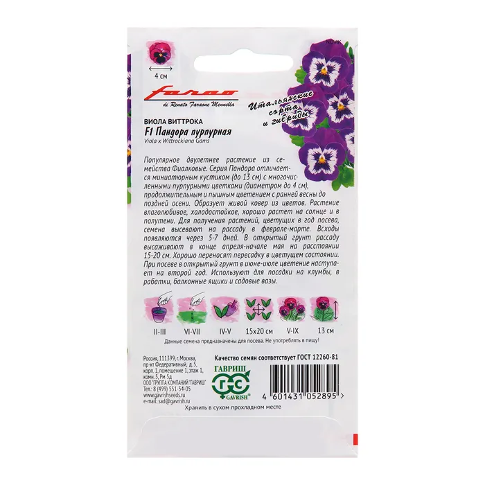 Серия Пандора отличается миниатюрным кустиком (до 13 см) с многочисленными пурпурными цветками (диаметром до 4 см), продолжительным и пышным цветением с ранней весны до поздней осени.