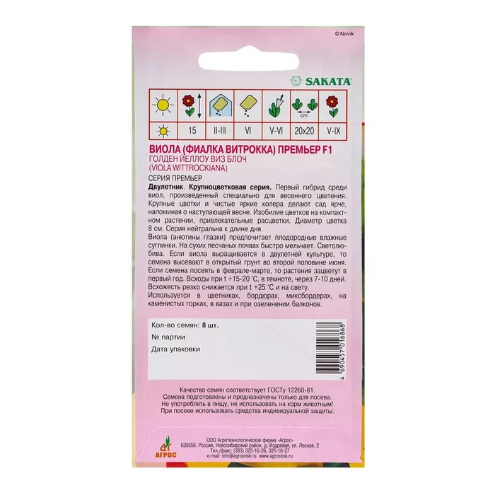 Семена Виола Премьер F1 Голден Йеллоу виз Блоч 8шт* — Характеристики