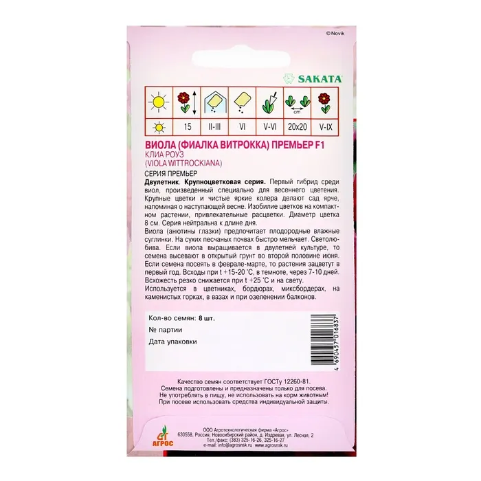 Семена Виола Премьер F1 Клиа Роуз 8шт — Характеристики