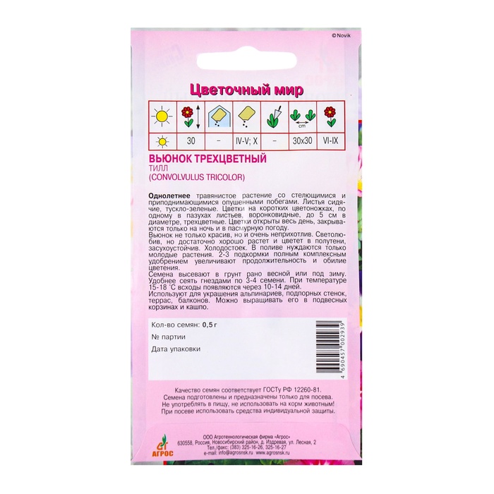 Семена Вьюнок трехцветный «Тилл», 0.5 г, «Агрос» — Характеристики