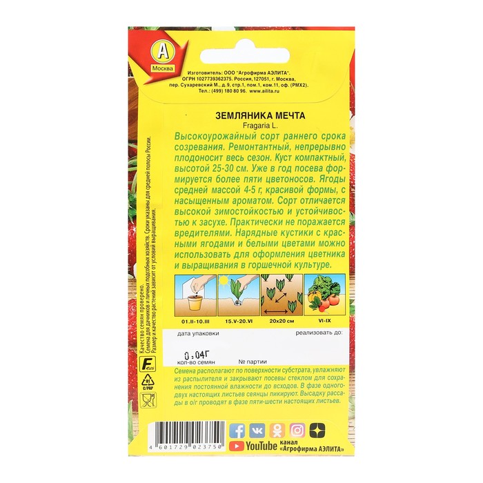«Мечта» — это сорт раннеспелой и высокоурожайной земляники с непрерывным сезонным плодоношением. Компактные кусты украшены крупными ароматными ягодами массой 4–5 г.