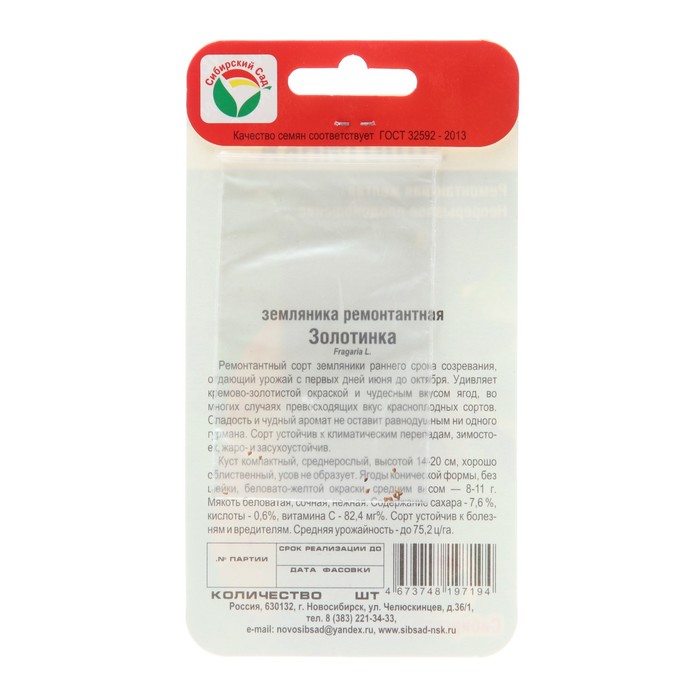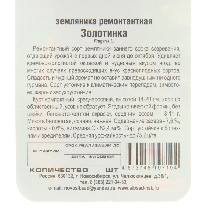 Семена Земляника "Золотинка", 0,02 г — Характеристики