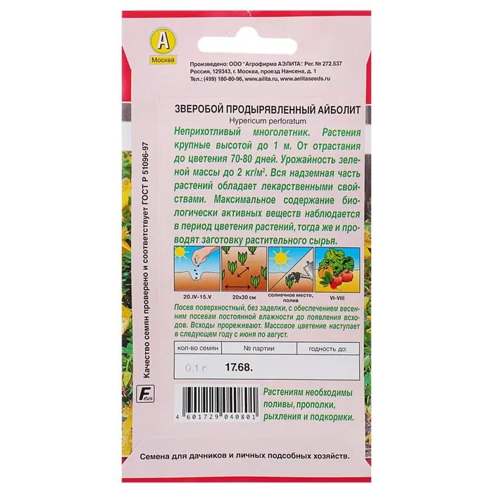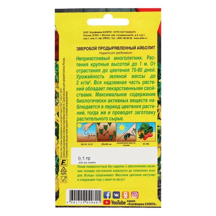 Неприхотливый многолетник. Сорт формирует крупные растения высотой до 1 м. От отрастания до цветения 70-80 дней. Урожайность зеленой массы до 2 кг/м2. Вся надземная часть растений обладает лекарственными свойствами. Оказывает антимикробное и противовирусное действие, стимулирует восстановление тканей (используется для заживления ран, облегчения болей при растяжениях, вывихах, ожогах), улучшает венозное кровообращение и кровоснабжение внутренних органов, укрепляет капилляры. Максимальное содержание биологически активных веществ наблюдается в период цветения растений, тогда же и проводят заготовку растительного сырья.