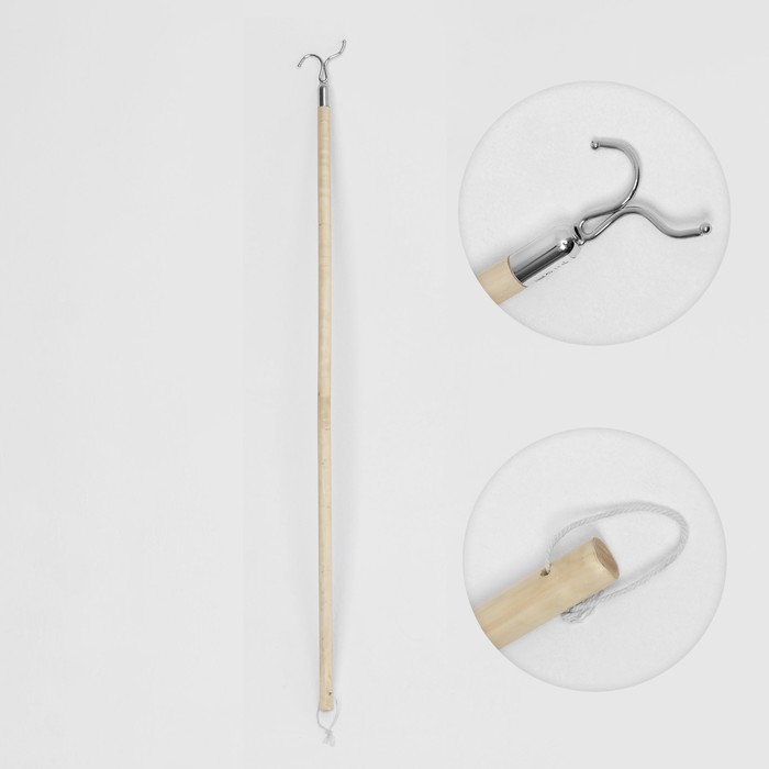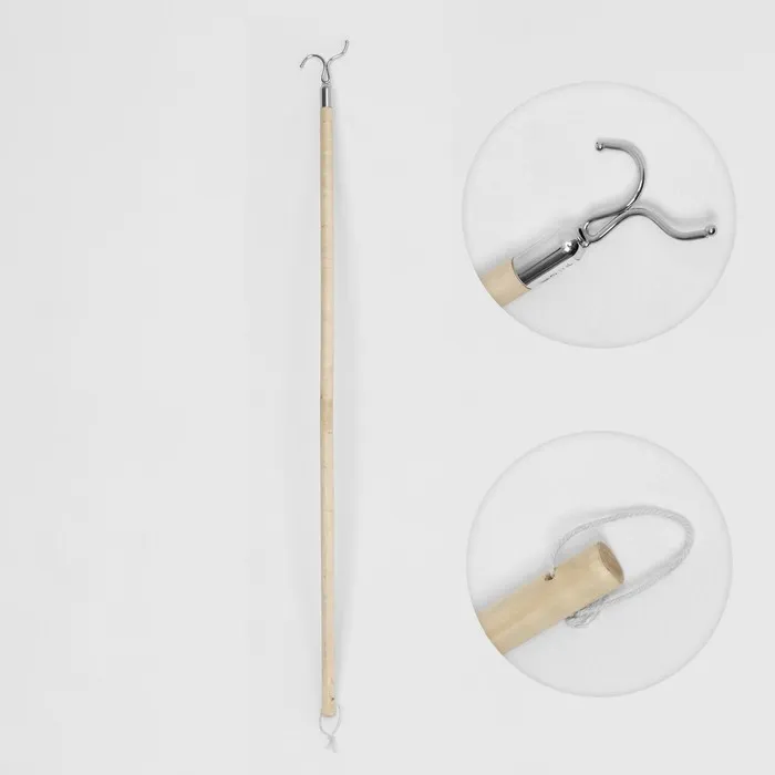 Изготовленный из прочного металла и дерева, съёмник сочетает в себе надежность и стиль. Его продуманный дизайн делает использование простым и комфортным, позволяя вам легко добраться до любой вещи без лишних усилий. Забудьте о неудобствах — с этим инструментом вы сможете быстро и аккуратно организовать свой гардероб.