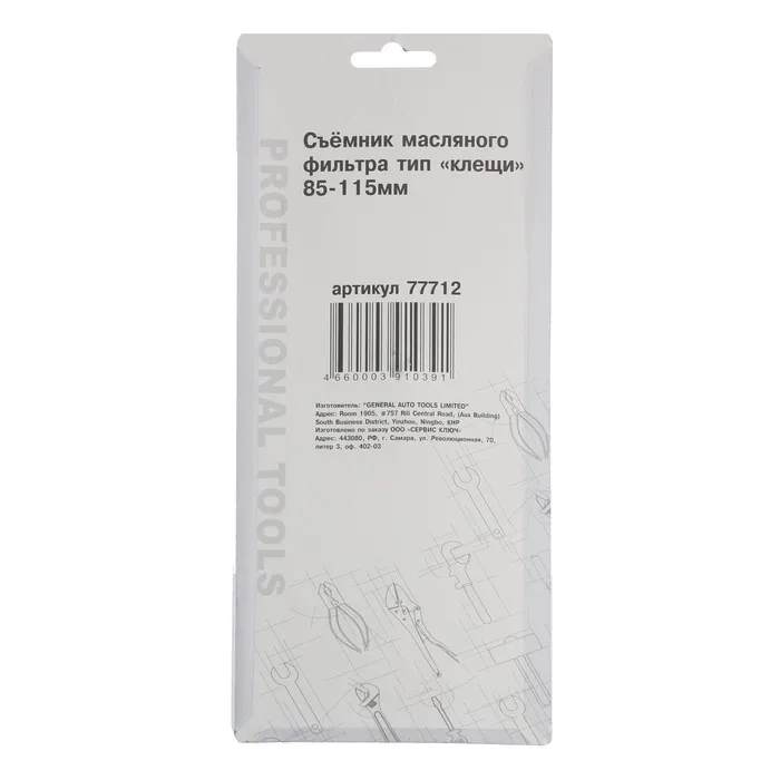 Съемник масляного фильтра СЕРВИС КЛЮЧ, 77712, тип «клещи», 85 - 115 мм — Характеристики