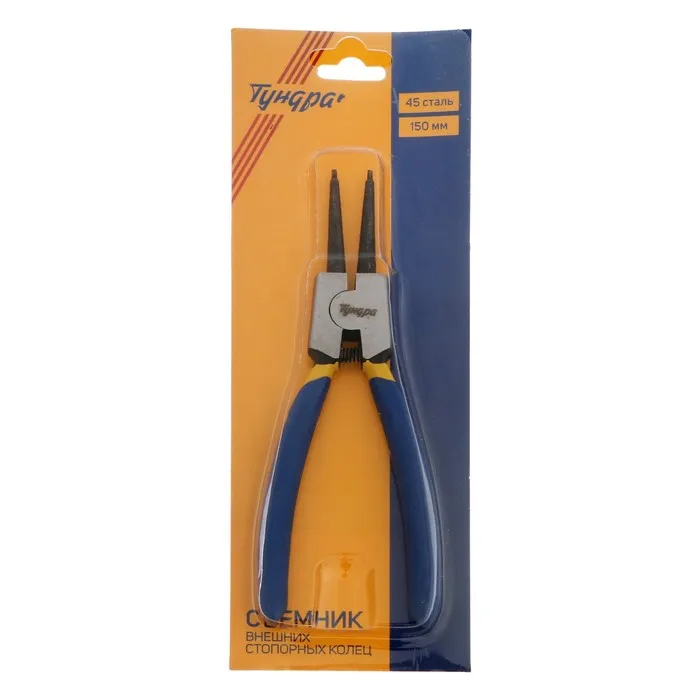 Съемник внешних стопорных колец ТУНДРА, прямые губки на разжим, 150 мм — Характеристики
