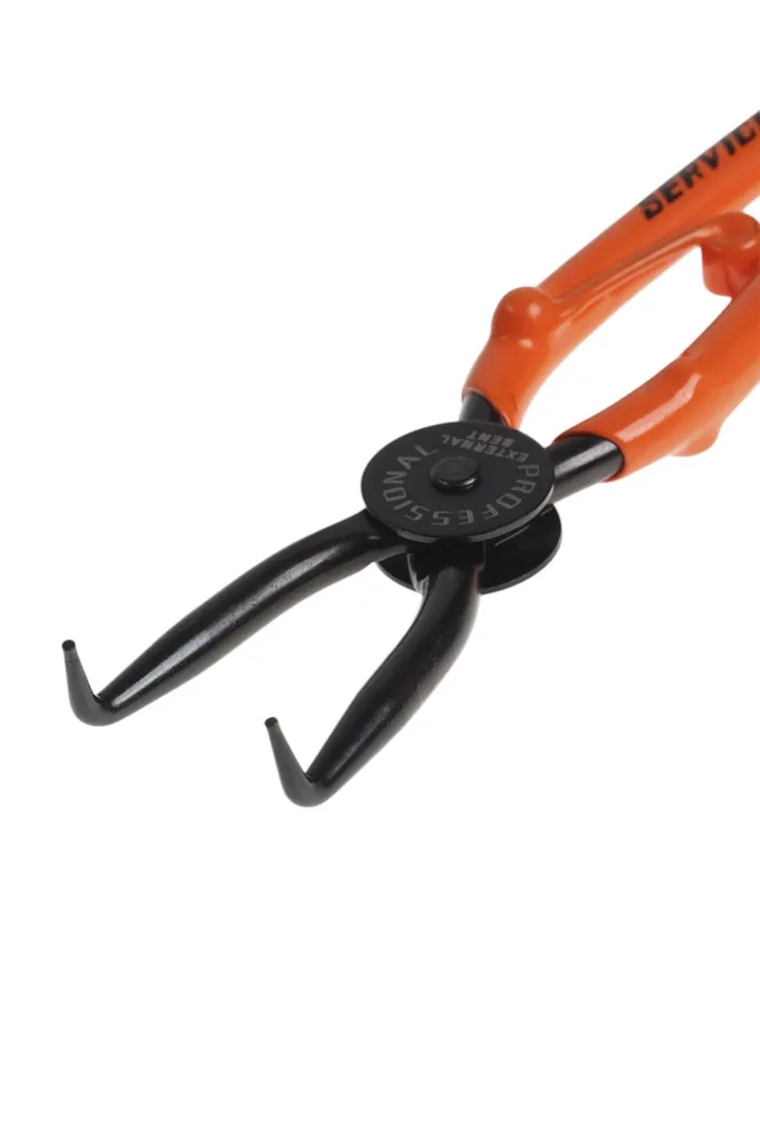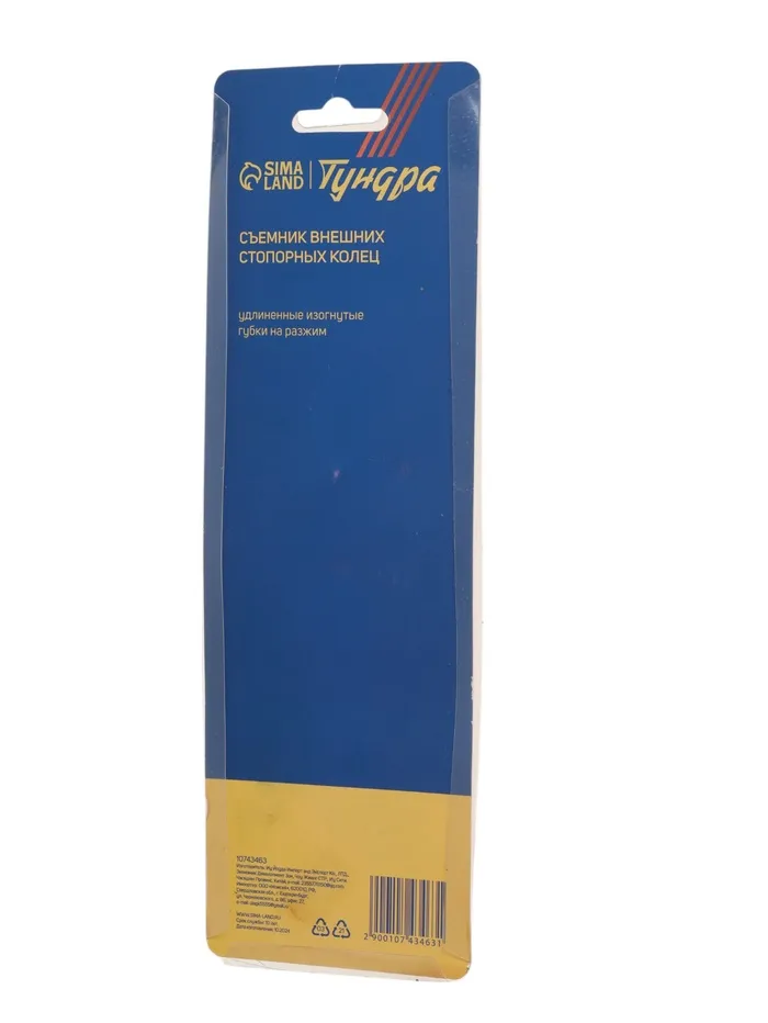 Съемник внешних стопорных колец ТУНДРА, удлиненные изогнутые губки на разжим, 180 мм