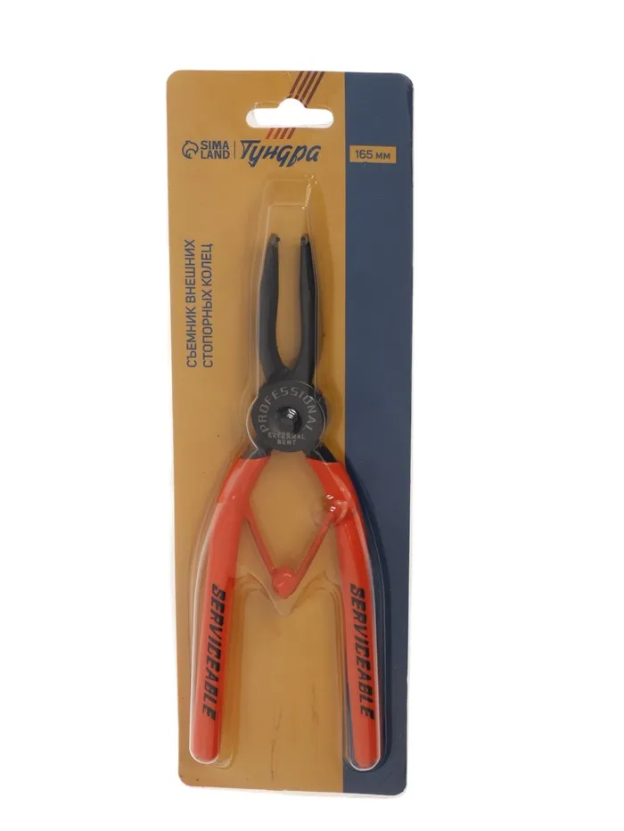 Съемник внешних стопорных колец ТУНДРА, удлиненные изогнутые губки на разжим, 180 мм — Характеристики